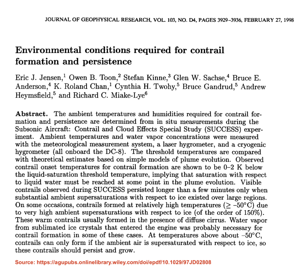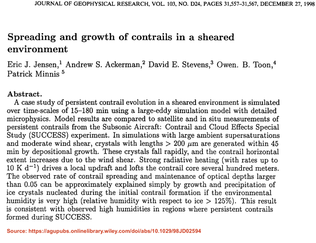 Jensen (1998), one of the lead authors of that campaign, tracked the growth of 20 contrails under different humidity conditions.