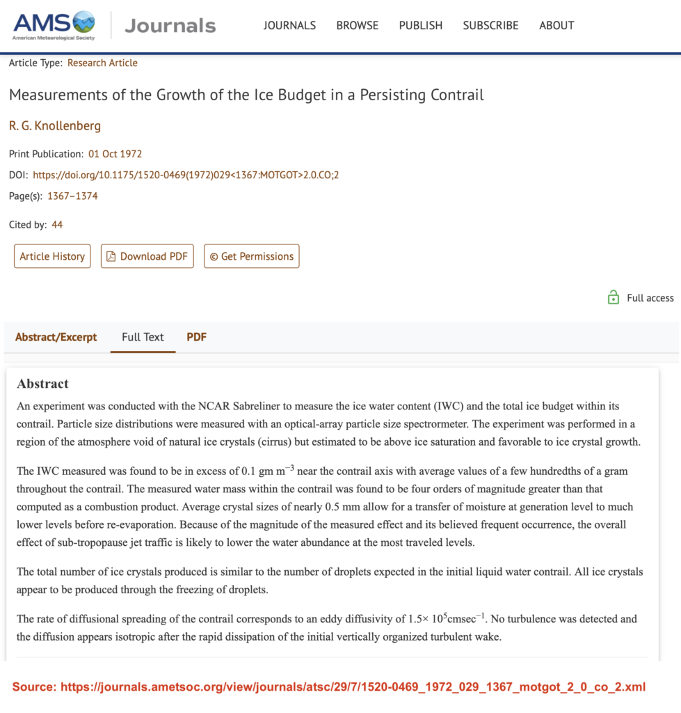 A 1972 study by Knollenberg measured how much a contrail could expand after leaving the engine.