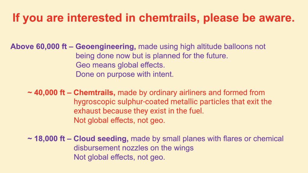 I can’t see what a chemtrail whistleblower would be able to tell the chemtrail fraternity because nothing is being done surreptitiously.