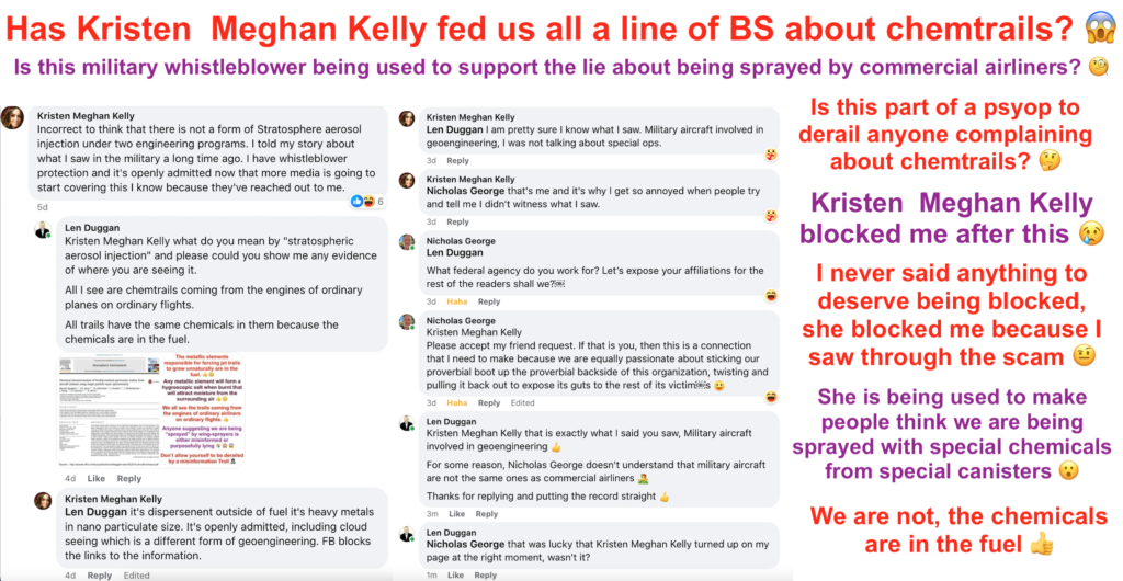 I spoke to Kristen on my Facebook page and knew from the start that her whistleblowing had nothing to do with chemtrails.