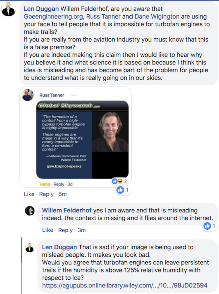 We have already seen how one whistleblower, Willhem Fiederhof, was used fraudulently by people spreading the false idea that turbofan engines do not leave trails.